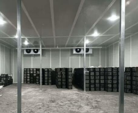 (3)库板方面,均采用的是100mm聚氨酯双面彩钢板保温库板,该保温板具有防潮、防水、防火等特点,阻燃标准为B2级,从而在确保实现冷库稳定低温环境的同时极大地降低了后期运行成本。